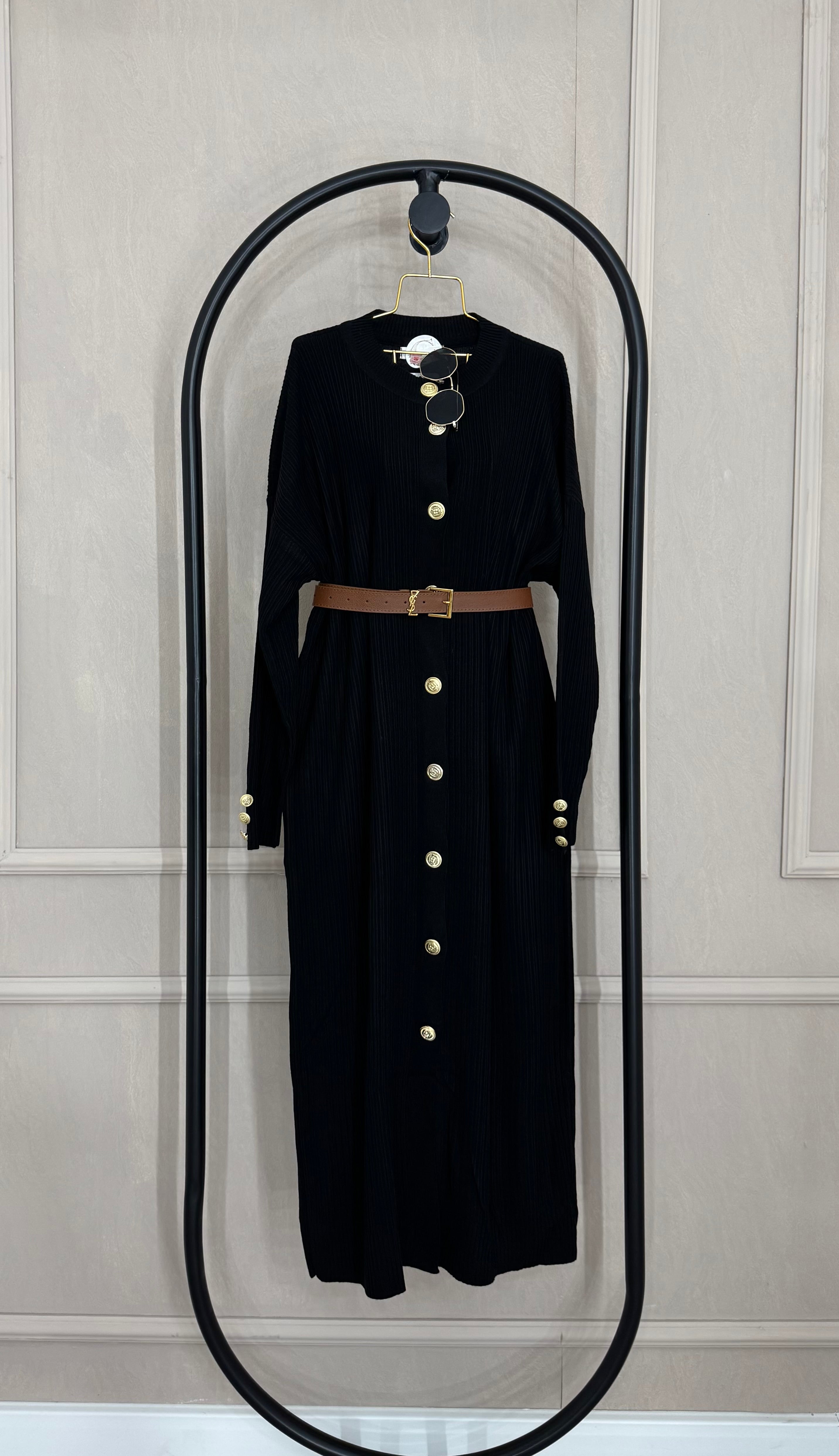Dzemper haljina sa zlatnim detaljima - CRNA