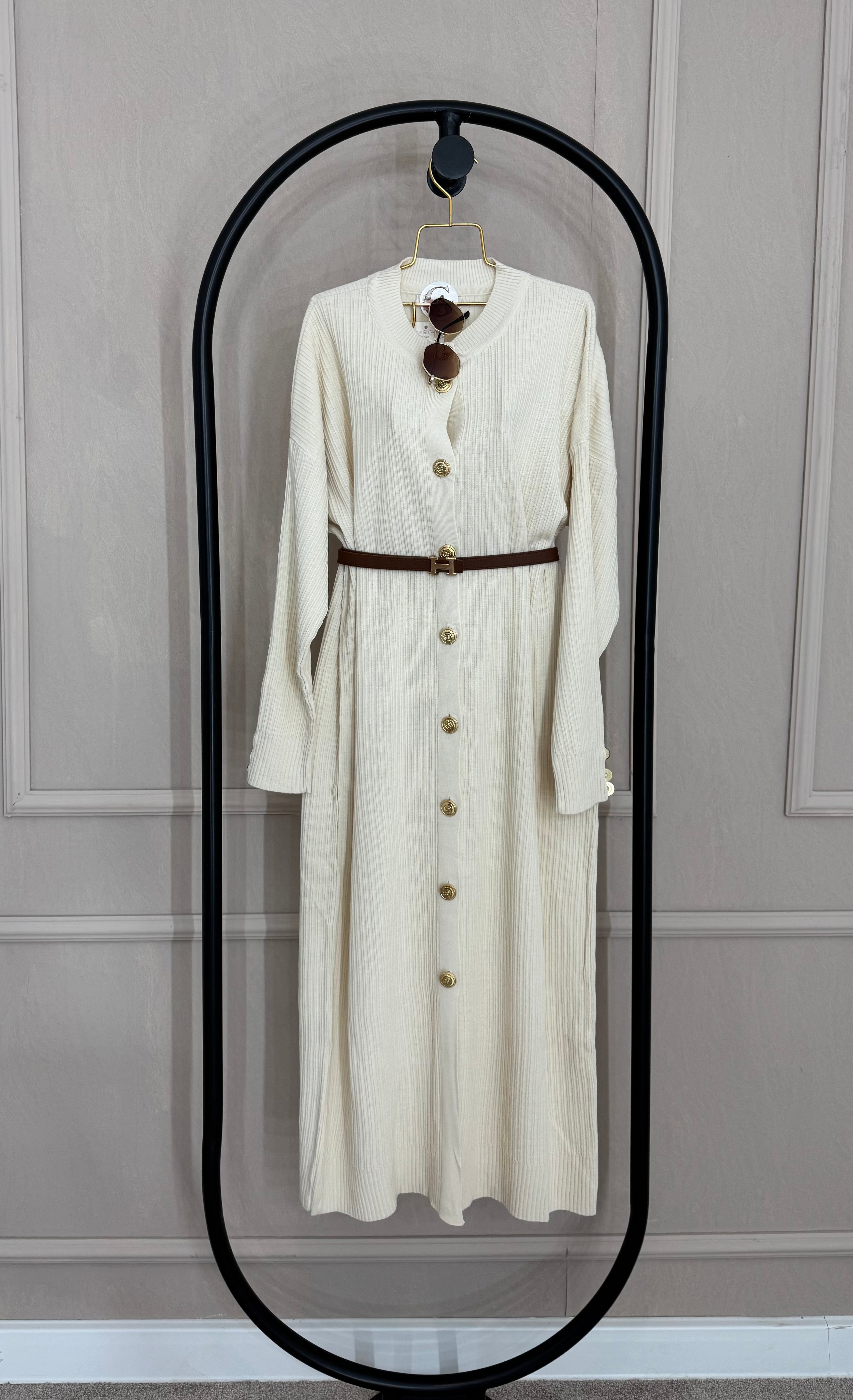 Dzemper haljina sa zlatnim detaljima - ECRU