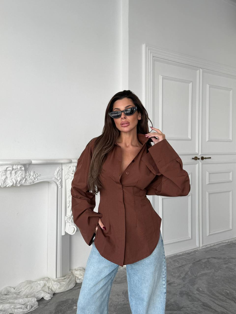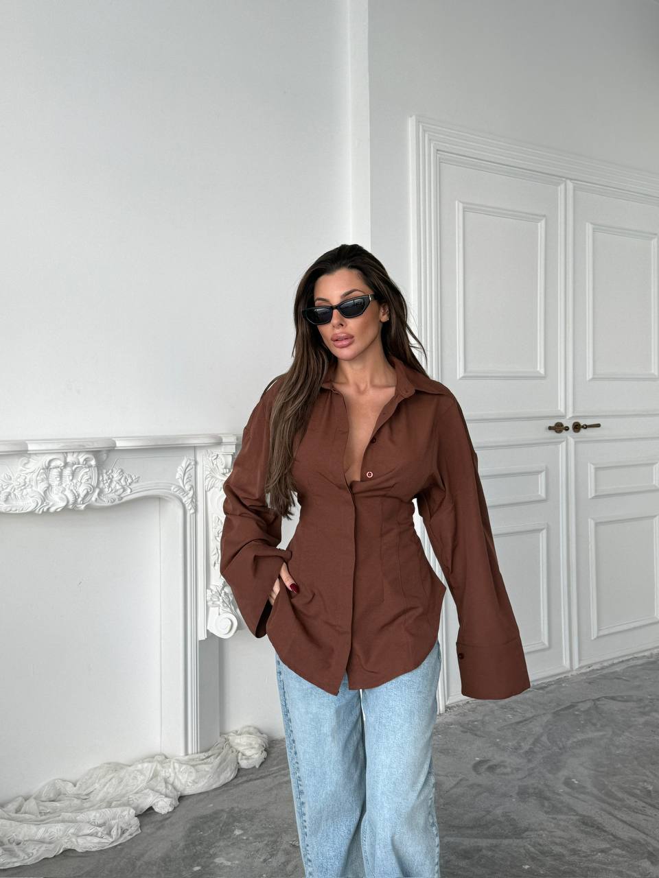 Duza strukirana kosulja - smedja