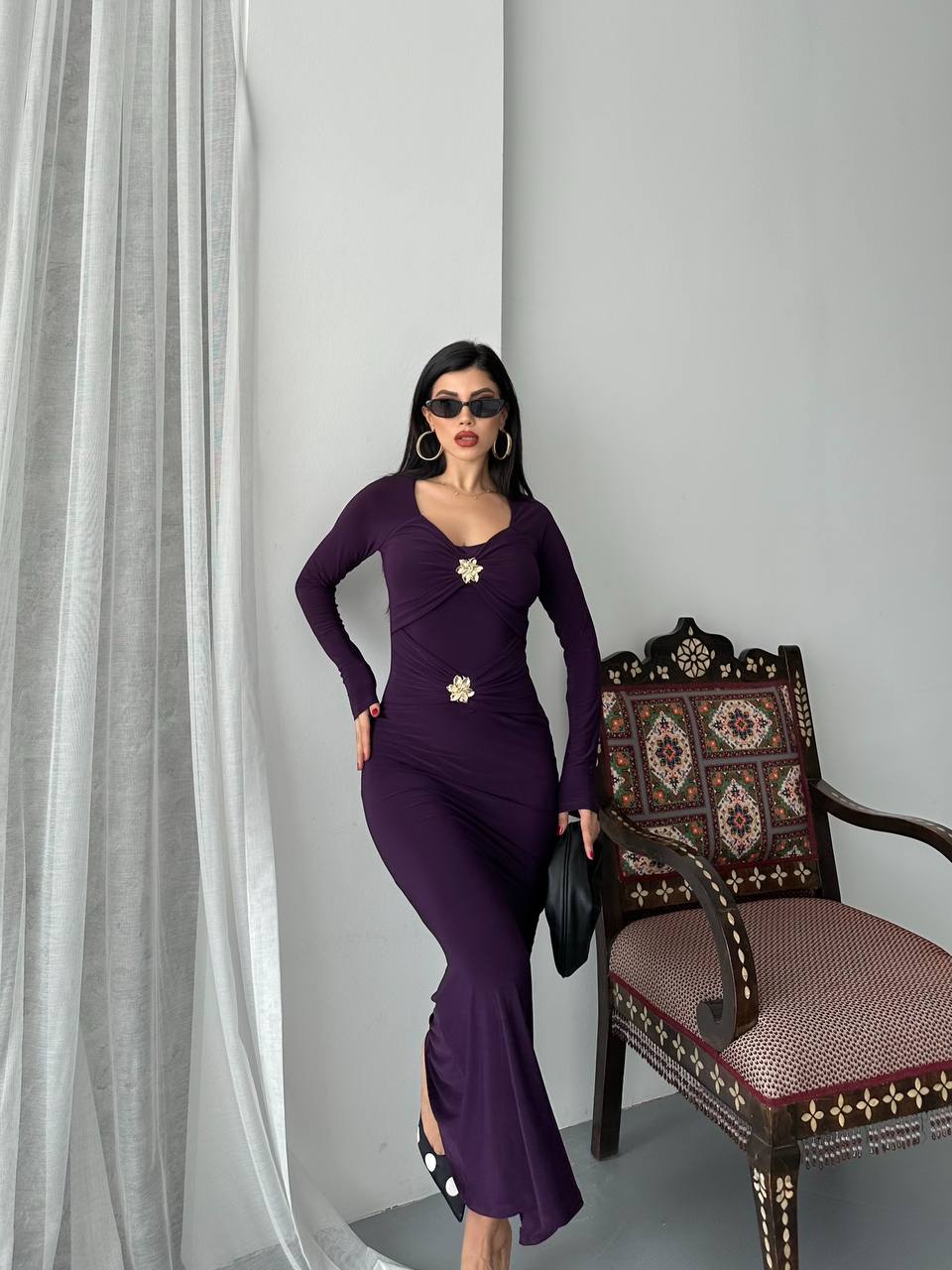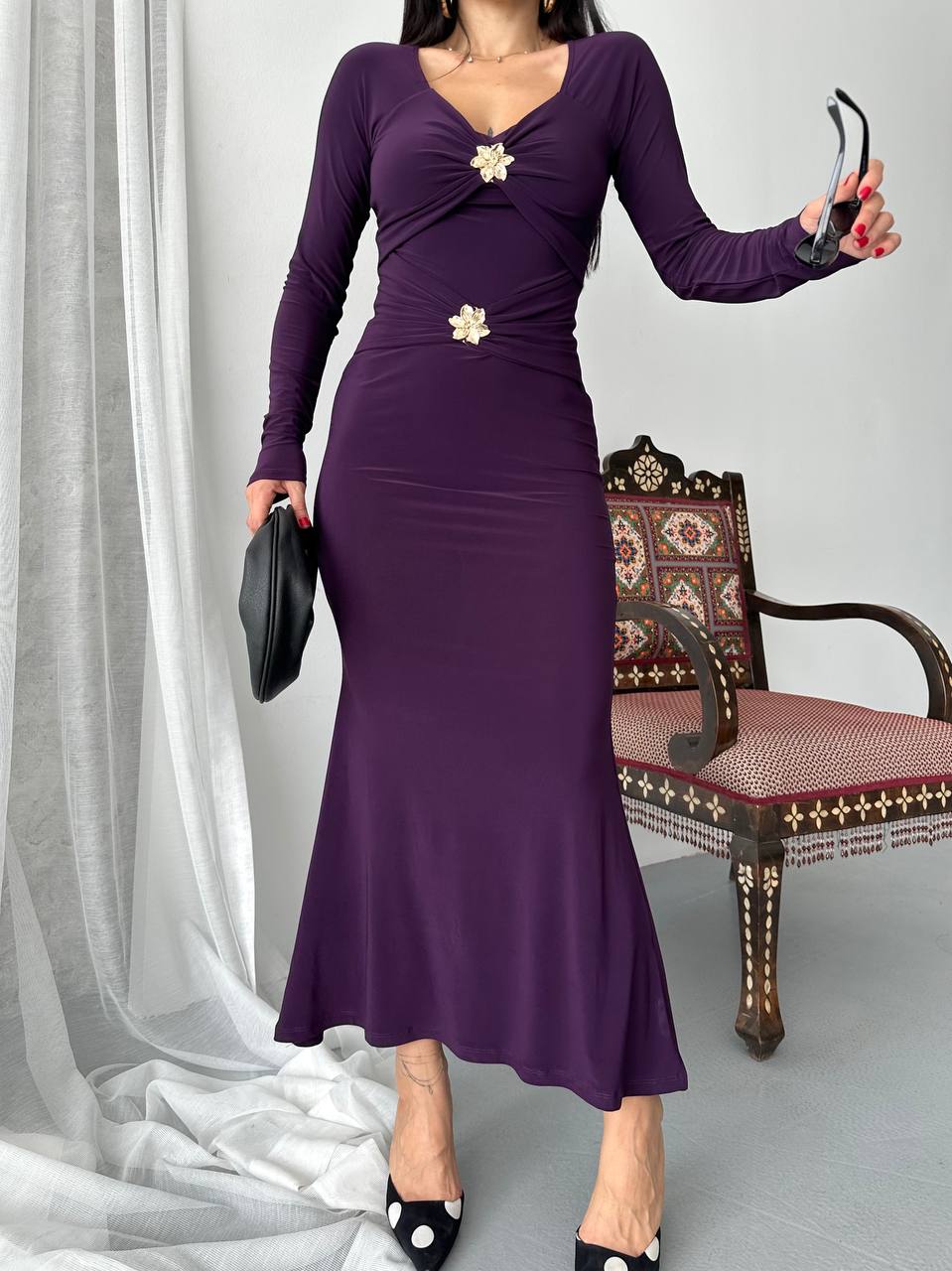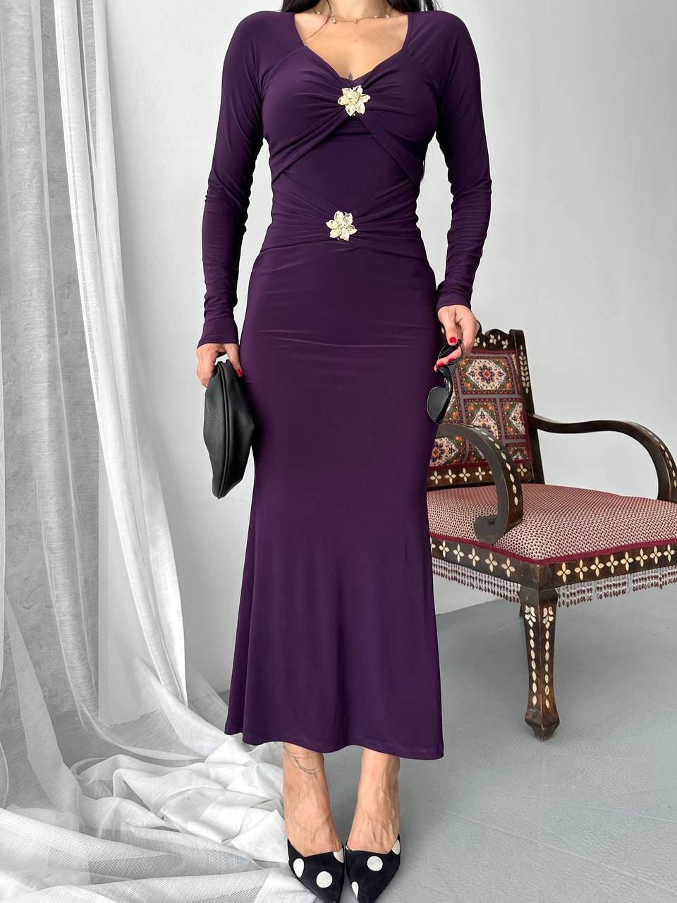 Haljina od likre sa zlatnim detaljima - ljubicasta