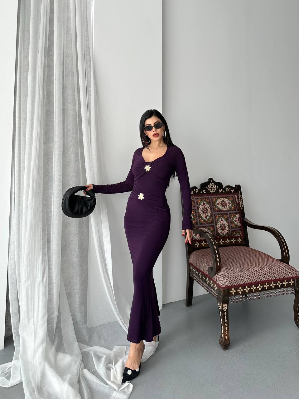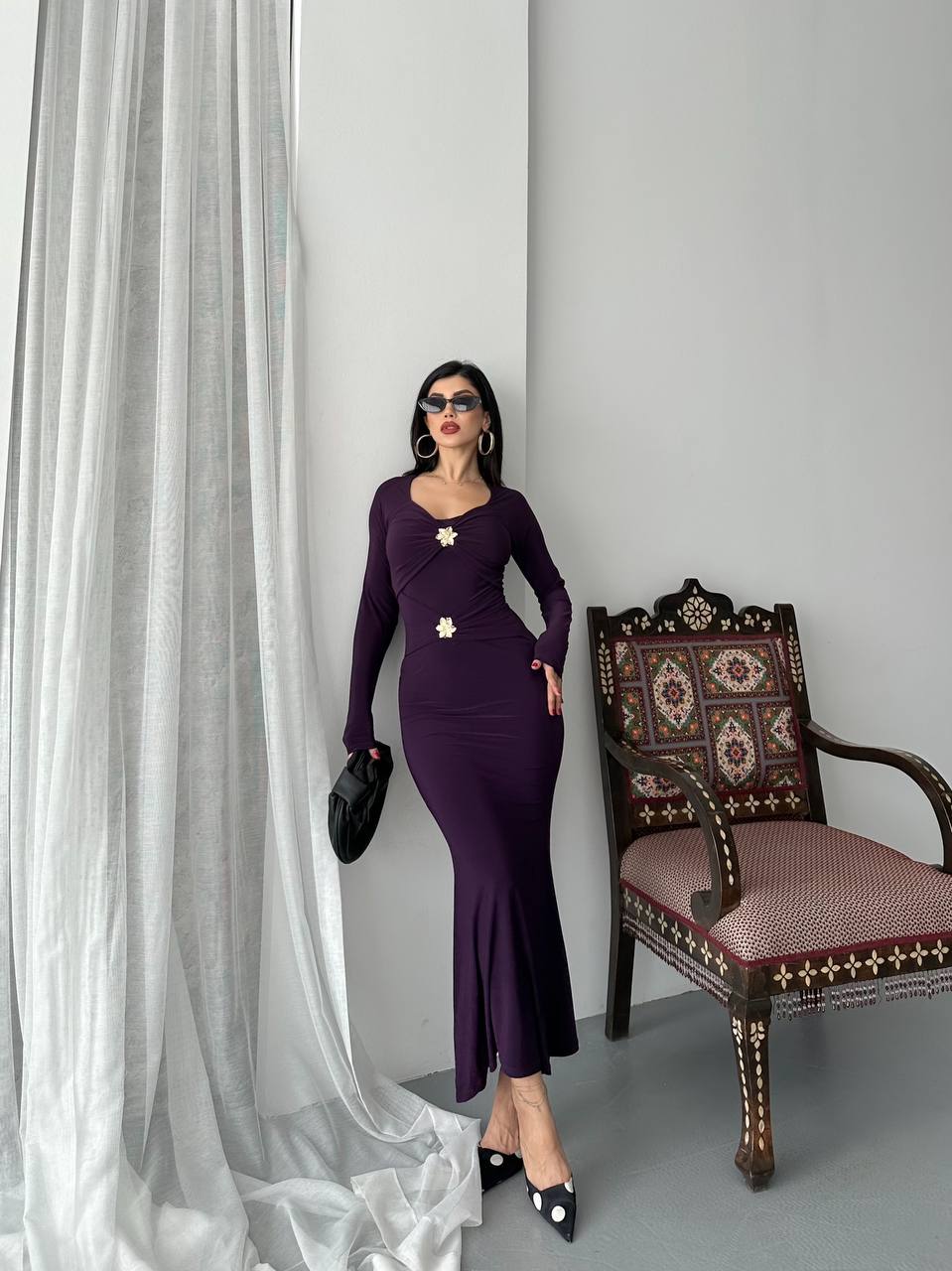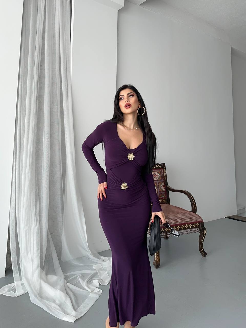 Haljina od likre sa zlatnim detaljima - ljubicasta