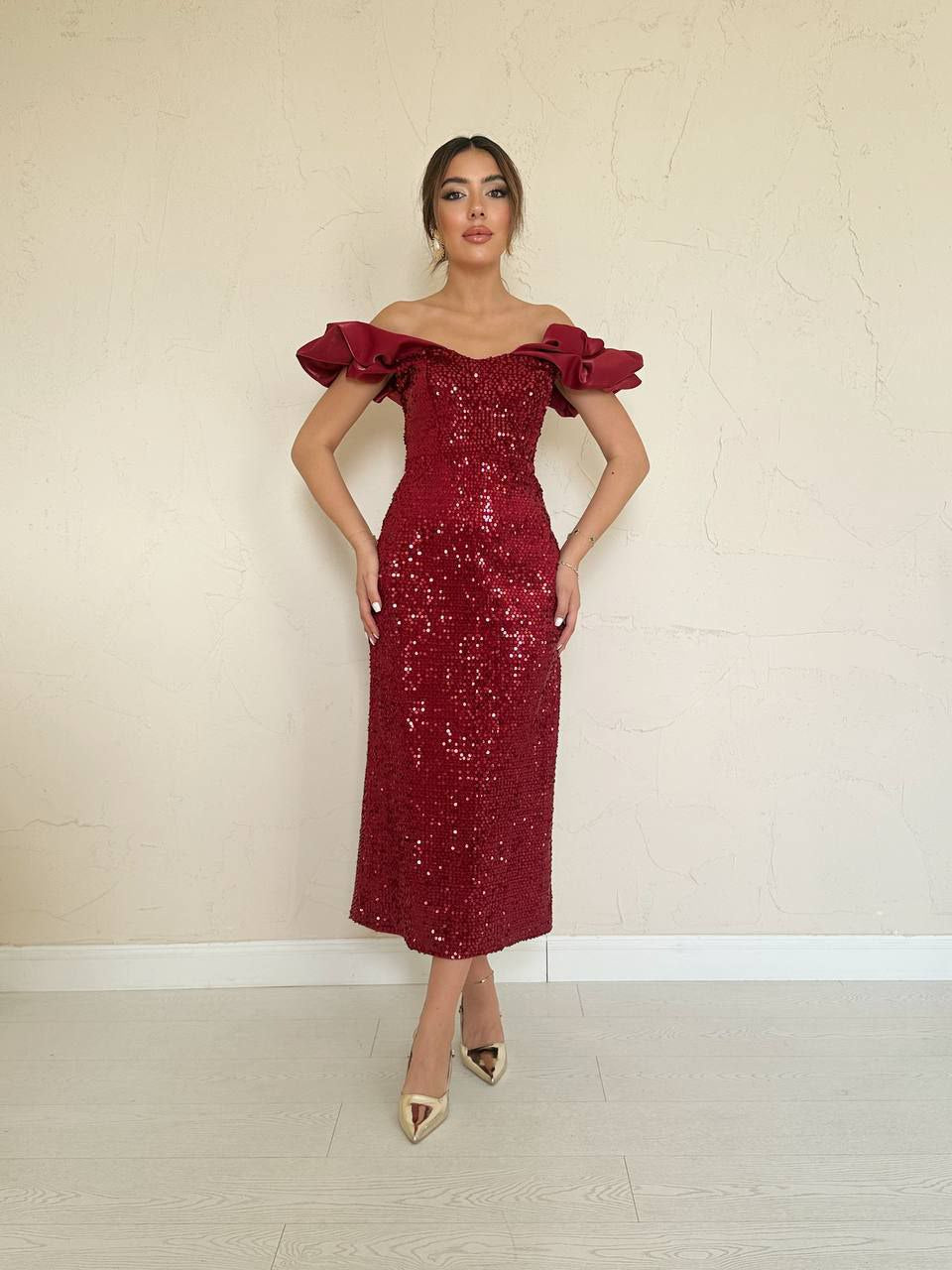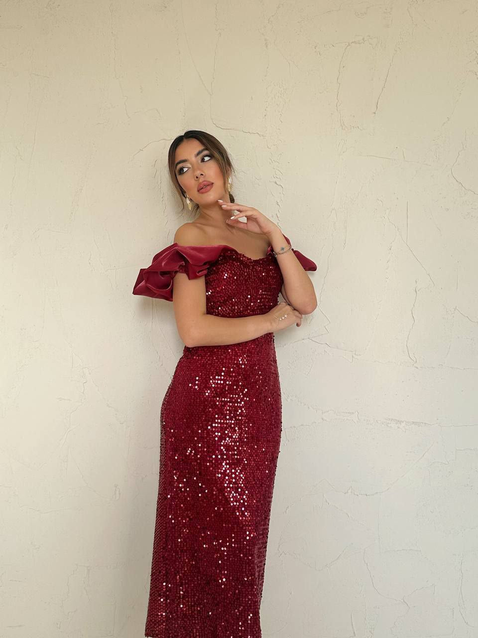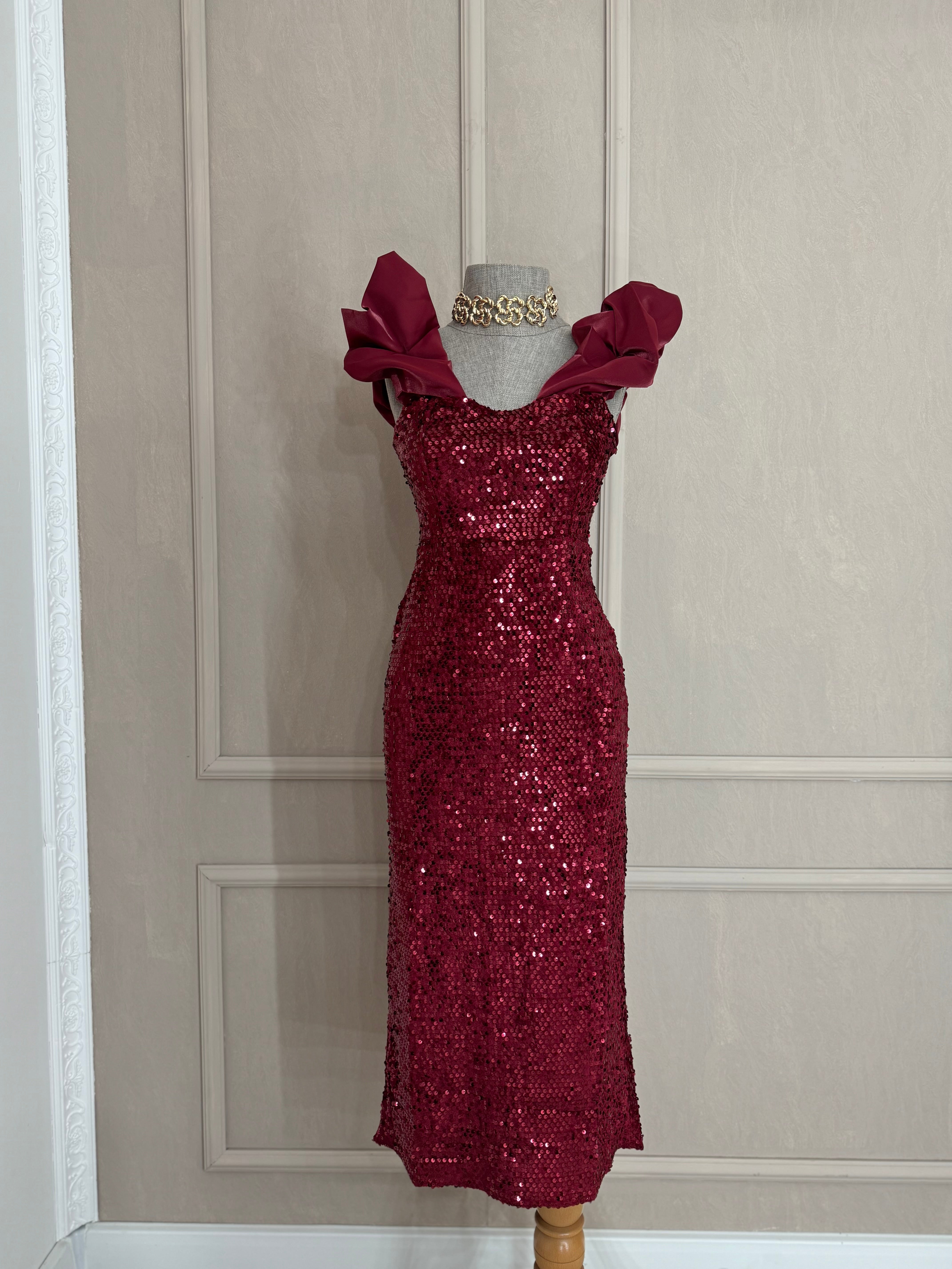 Haljina sa sljokicama - bordo