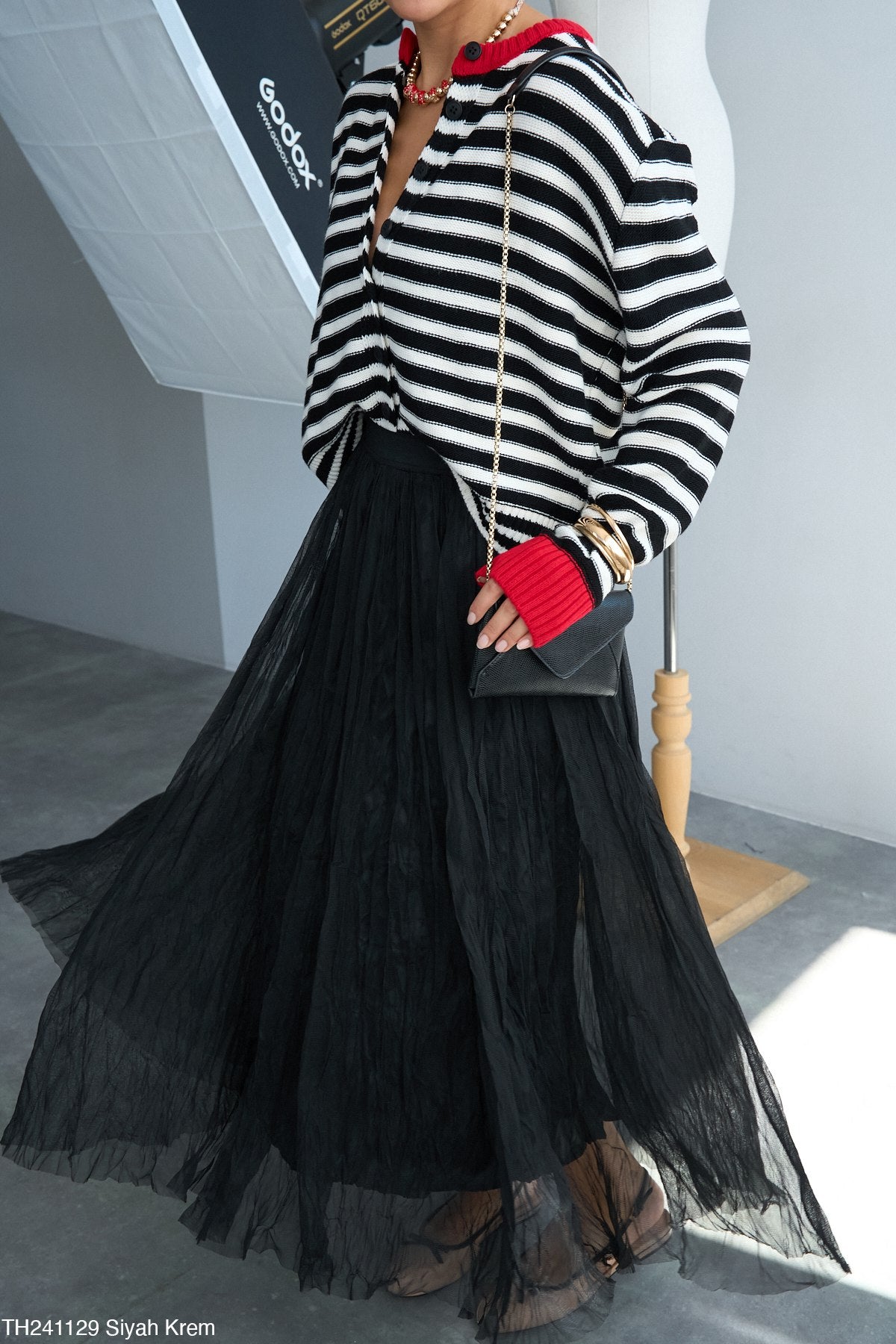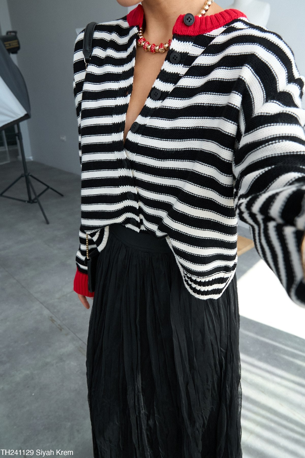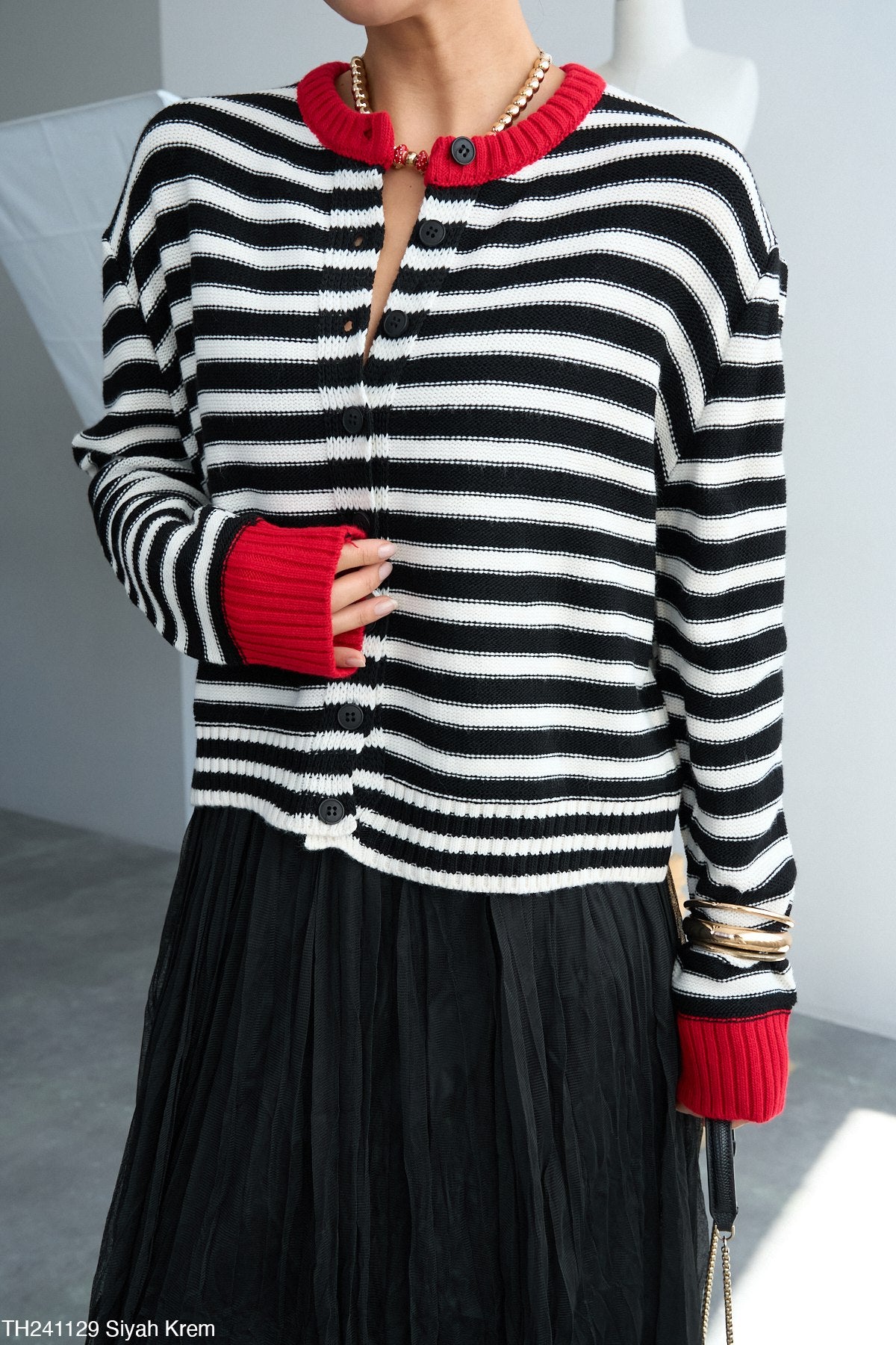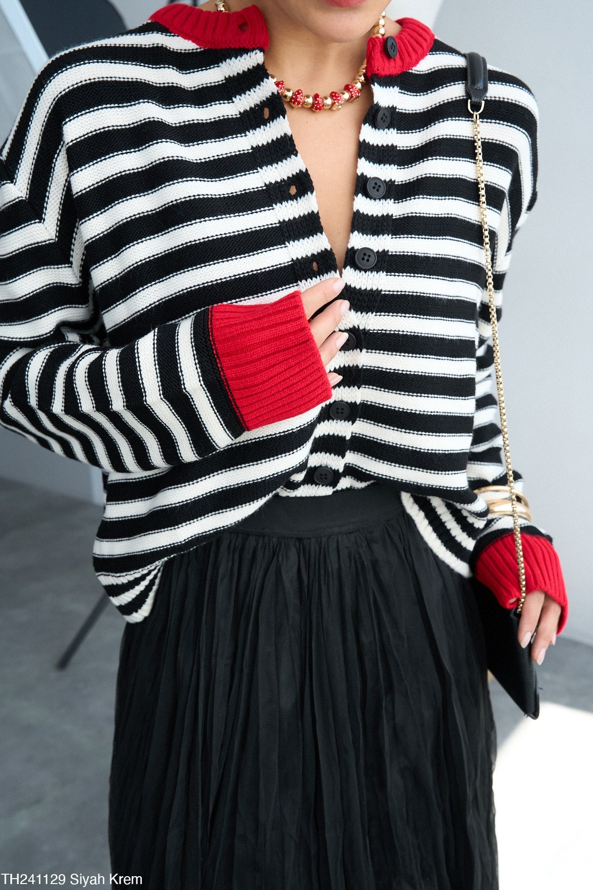 Prugasti dzemper sa crvenim detaljima ( teget)